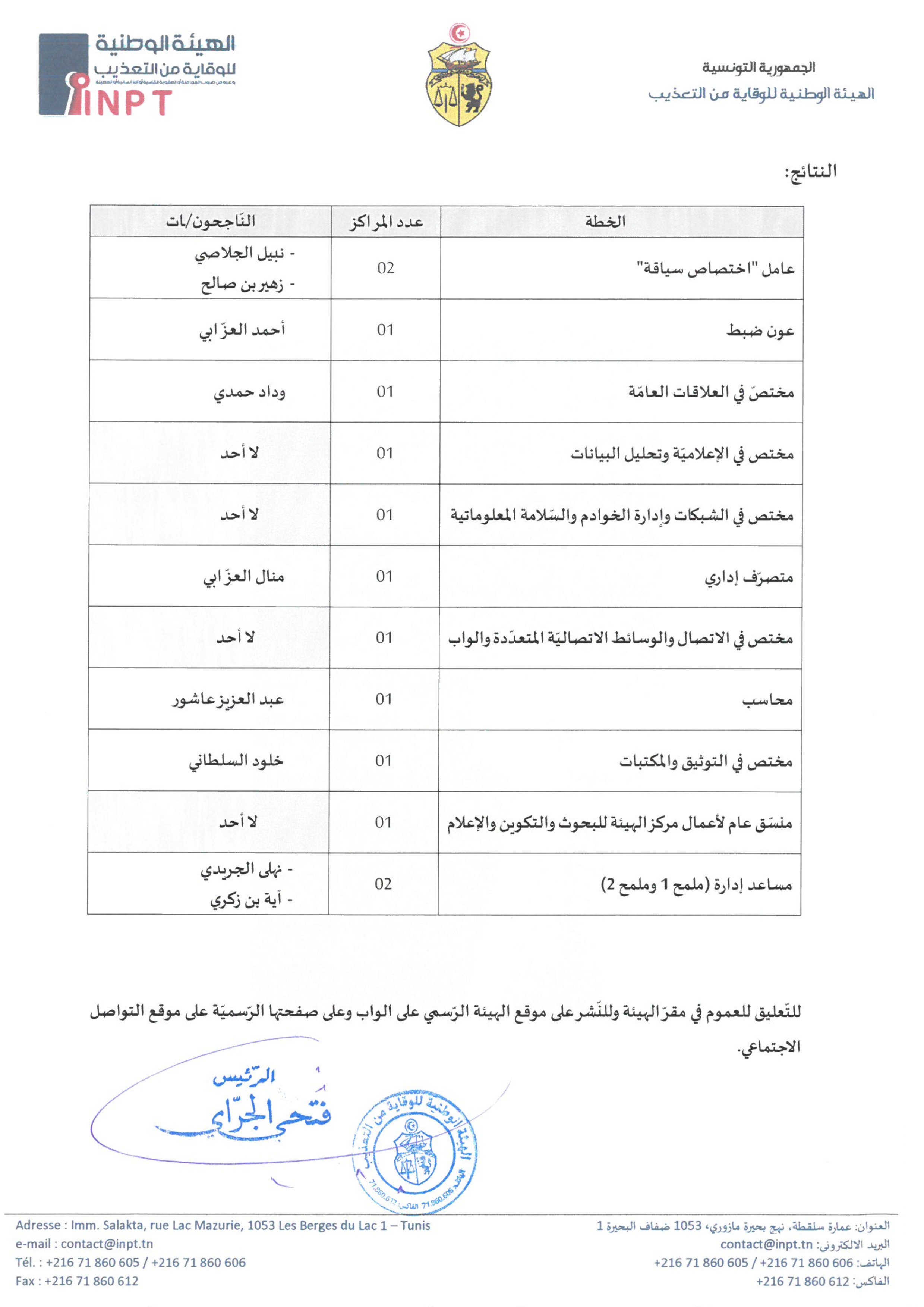 نتائج المناظرة عدد 01 لسنة 2022 لانتداب أعوان بالهيئة الوطنية للوقاية من التعذيب